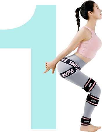 SNPE벨트를 모두 착용했을 때 중심을 잡기 어려운 사람은 무릎 위의 벨트만 묶은 상태에서 SNPE ① 동작을 한다.